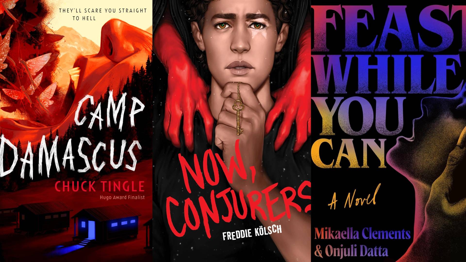 If you’re a fan of Buffy the Vampire Slayer or The Craft, do yourself a favor and pick up a copy of Freddie Kölsch’s Now, Conjurers. Set in 1997 Massachusetts, we follow Nesbit Nuñez, a high school student and talented mechanic. Nesbit meets an interesting cast of characters at his new school, including Bastion Attia, a handsome quarterback. Nesbit and Bastion become secret boyfriends, and Nesbit joins a coven that includes Bastion, his younger sister Dove, and girlfriends Drea and Brandy.