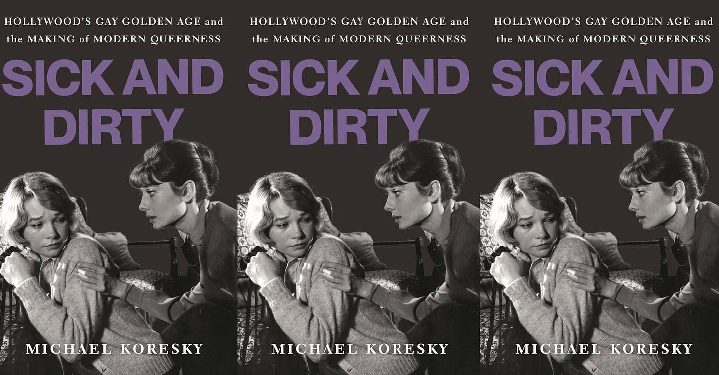 The story of Michael Koresky’s excellent book, Sick and Dirty: Hollywood’s Gay Golden Age and the Making of Modern Queerness, begins in a classroom. While teaching a Queerness in American Cinema class at NYU in 2021, Koresky showed his students The Children’s Hour, the controversial 1961 film in which Audrey Hepburn and Shirley MacLaine play women at the center of a rumored lesbian affair. Often derided for its supposedly retrograde depiction of queerness and reliance on gay tragedy, Koresky was surprised by how many of his students were touched by the film and felt it connected to their lives.