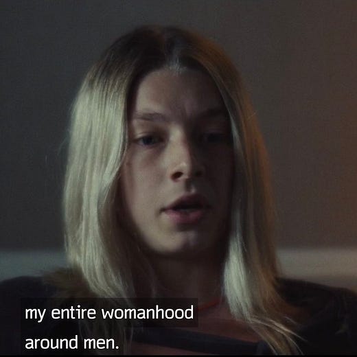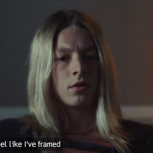 Luckily the episode also included a brilliant performance by the incredible Hunter Schafer, who also co-wrote the episode with showrunner Sam Levinson. In a stunning monologue partway through the special, Jules ruminates to her therapist about how she has constructed her femininity based on what she thinks men want (pictured above). To me, this episode proved that it’s Schafer’s genius that should be celebrated here rather than Levinson’s, as her brilliance as both a performer and a writer were so clearly displayed here, and the episode in no way could have gone to the depths it did without Schafe’’s contribution. Anyways, Hunter Schafer is everything, and trans femmes are the future.